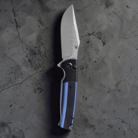 Kansept Arcus Damascus Framelock Folding Knife w/ Carbon Fiber Inlay