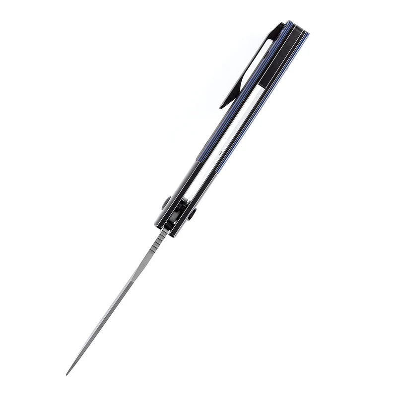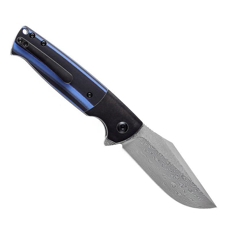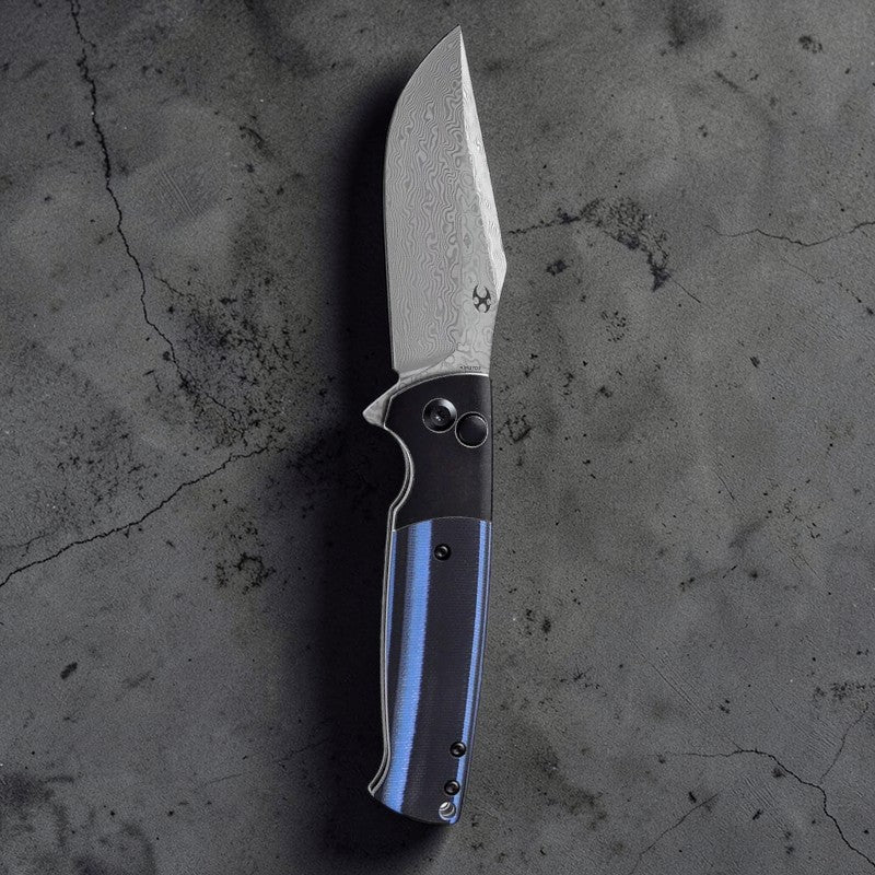 The Kansept Skikari combines premium Damascus steel with practical everyday carry design. Its 3.35" blade delivers elegant pattern work and reliable edge retention, while the G10 handle provides a secure, textured grip in any condition. The button lock mechanism offers quick, one-handed deployment and secure blade retention. Integrated pocket clip keeps your knife accessible and ready whenever you need it.