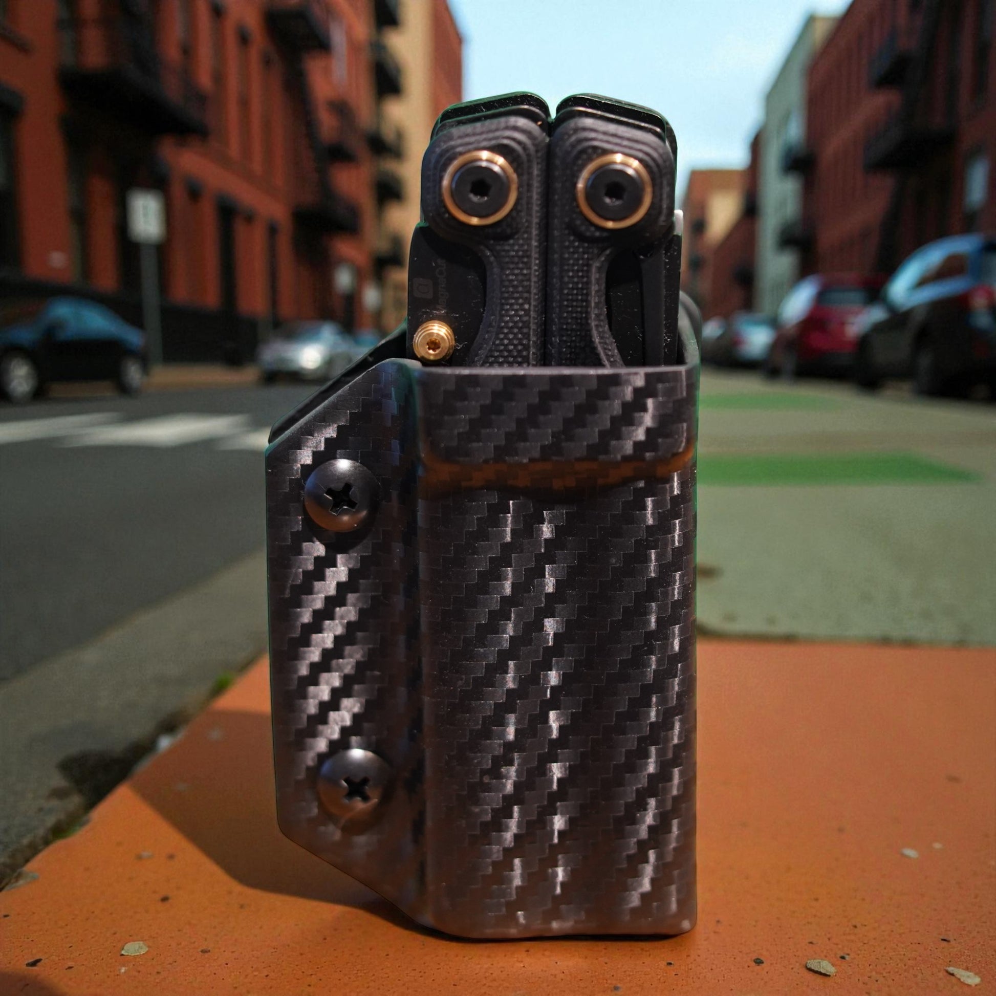 Our sheaths are constructed with a durable kydex material and handmade in the U.S.A. with painstaking attention paid to every last detail so you can be assured that your sheath will be as perfectly crafted as the multitool it carries.