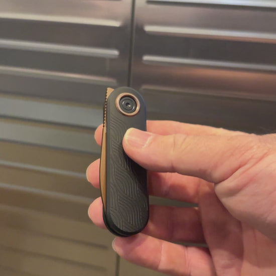 The Vosteed Corgi-V delivers refined performance in a compact package. Its 2.38" 14C28N Sandvik stainless blade features a distinctive Copper Dune finish that catches the light while maintaining exceptional edge retention. The black textured aluminum handle provides confident control, while the extended tang construction ensures durability through demanding tasks. At just 3.5" closed, this knife fits effortlessly into your pocket thanks to the integrated clip. The Vanchor lock mechanism keeps the blade secure during use, and the included black nylon zippered case protects your investment. Whether you're tackling everyday cutting or need a reliable backup blade, the Corgi-V proves that premium craftsmanship comes in small packages.